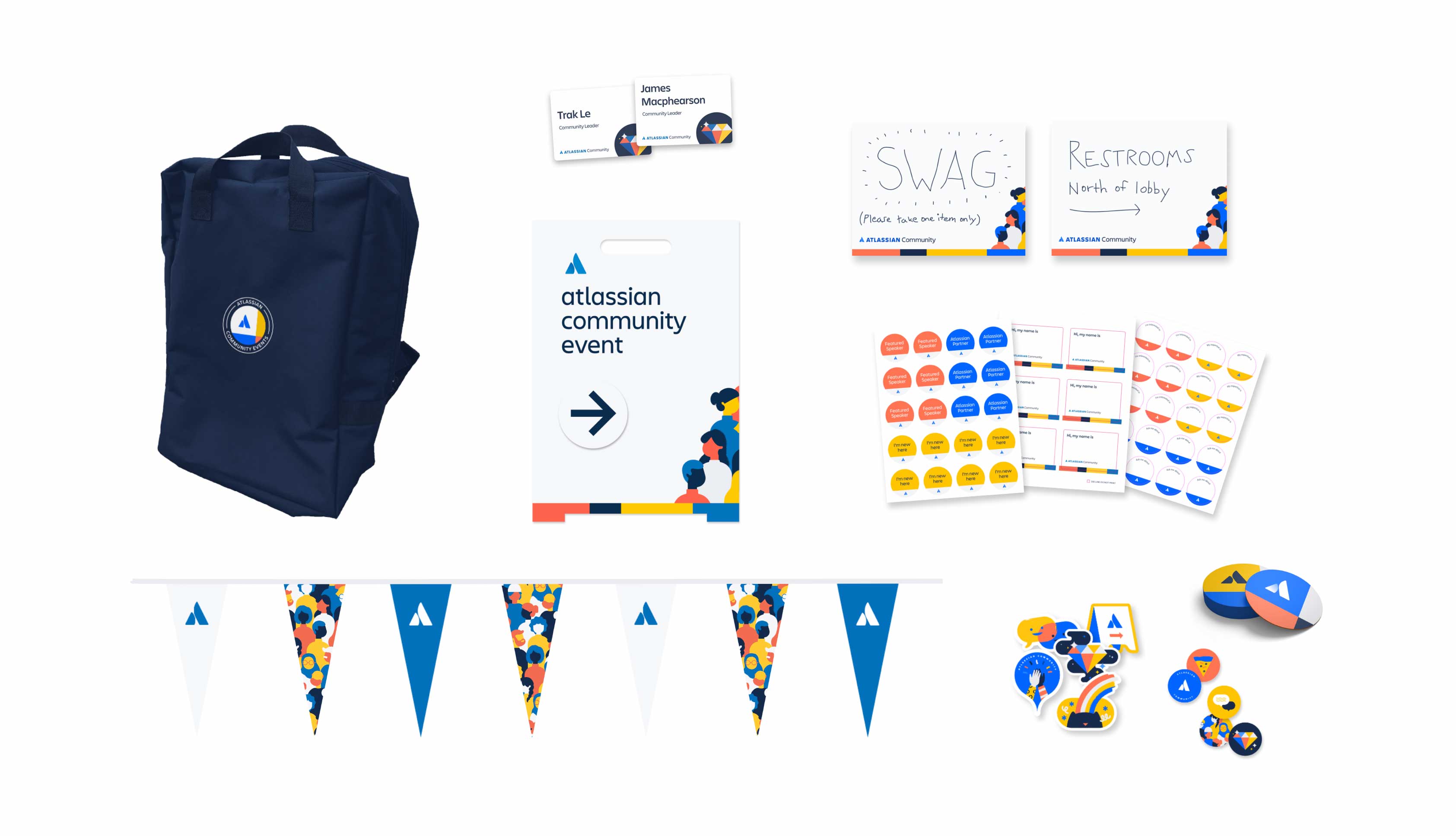 This page showcases my work as Lead Designer for the Atlassian Community from 2018-2020. During this tenure, I drove the visual integration of Atlassian’s User Groups and online forums into a unified brand ecosystem. My contributions included developing a distinct visual identity within the Atlassian parent brand, creating digital assets and templates, and designing physical collateral, swag, and products for global in-person events. The evolution of this visual system was a collaborative effort, featuring key contributions from creative director Kellie McCool, designer Joey Sabio, and illustrator Vania Wat.